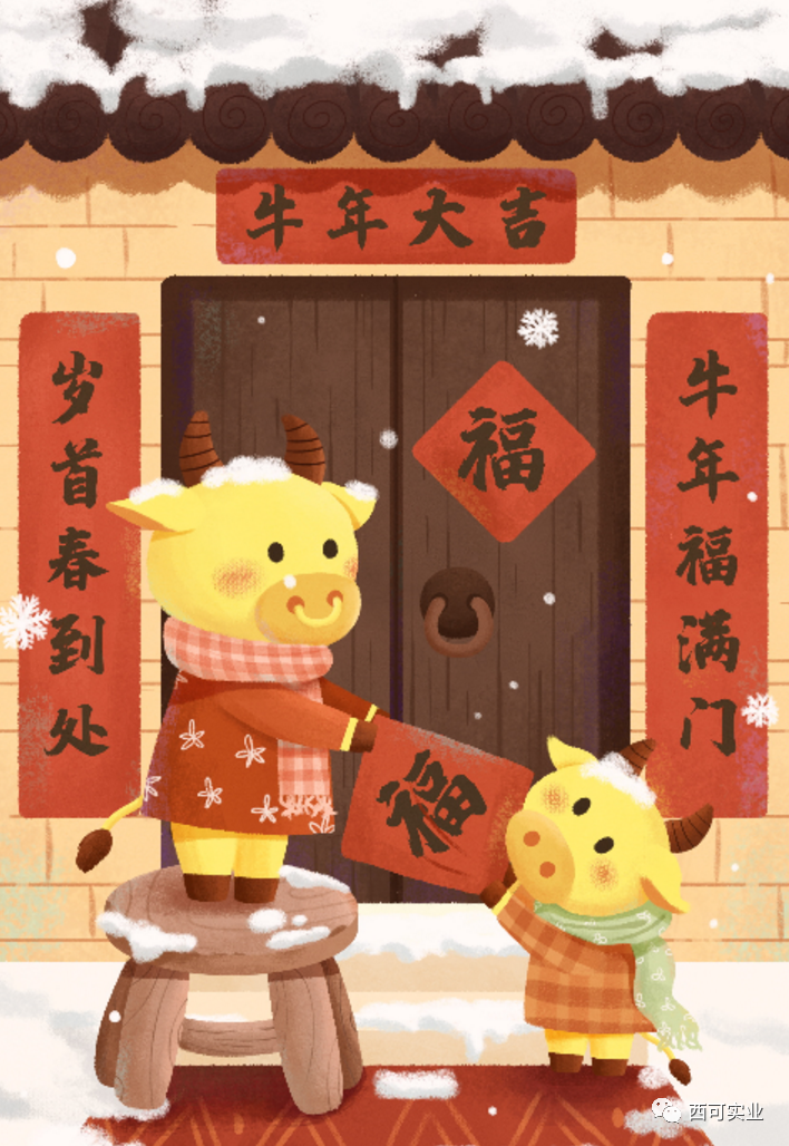 福鼠運財辭舊歲,牛轉乾坤迎新春,新的一年、新的開始,西可實業全體家人們將以更飽滿的工作激情、昂揚的奮斗姿態、堅定信心、錨定目標,譜寫西可實業更加美好的明天。